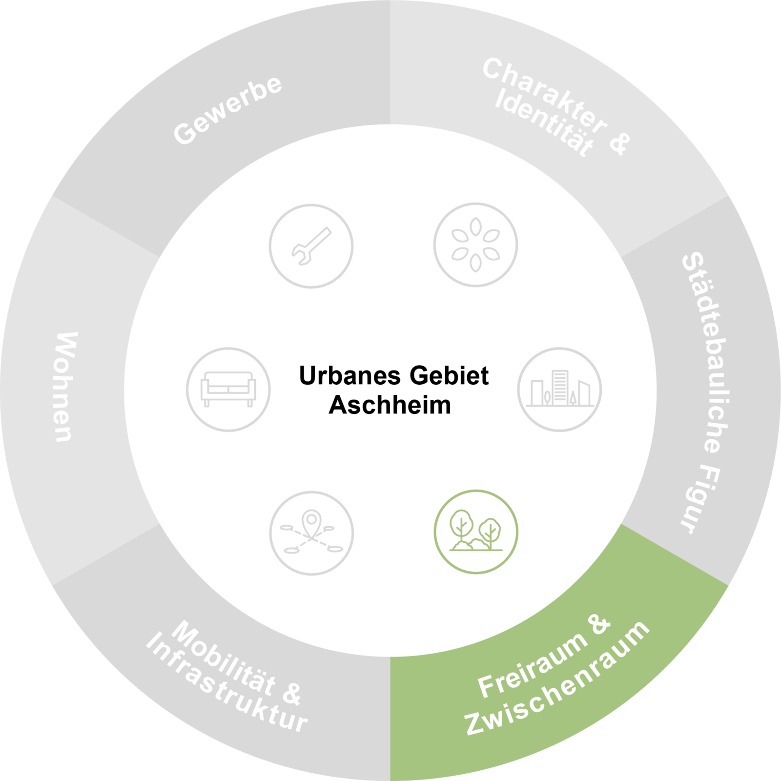 Die Planung basiert auf einem Zielbild, welches in einem ersten Schritt gemeinsam mit dem Gemeinderat Aschheims erarbeitet wurde – einer Summe verschiedener Maßnahmen, die einzelnen Leitthemen bzw. deren Handlungsfeldern zugeordnet sind. Jedes Leitthema verfolgt spezifische Zielsetzungen und Maßnahmen, die gemeinsam ein harmonisches und nachhaltiges Quartierskonzept formen.