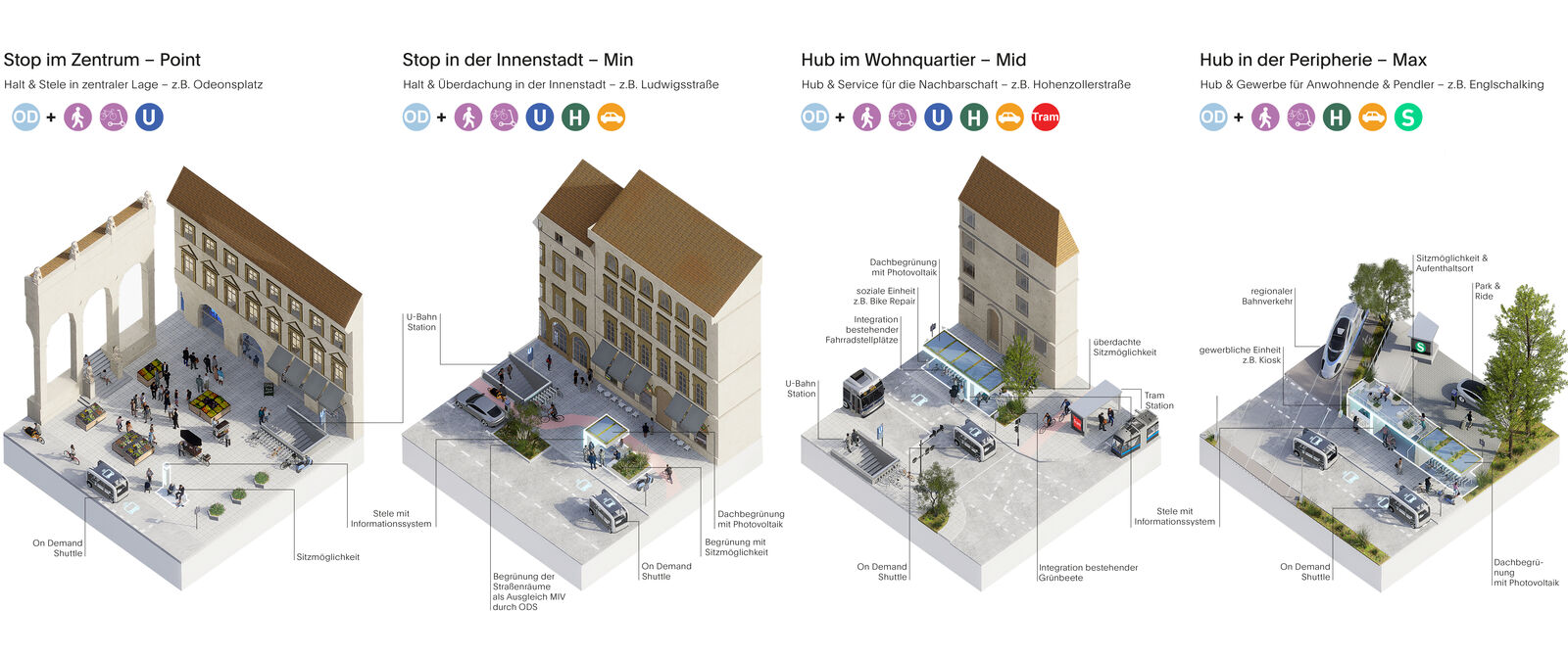 Im Rahmen des Open Calls der Internationalen Bauausstellung (IBA) Metropolregion München haben wir in Zusammenarbeit mit dem Lehrstuhl für Verkehrstechnik der Technischen Universität München unter der Leitung von Prof. Dr. Bogenberger zusammen mit Dr. Johannes Müller ein innovatives Konzept für On-Demand-Shuttle-Stationen entwickelt.