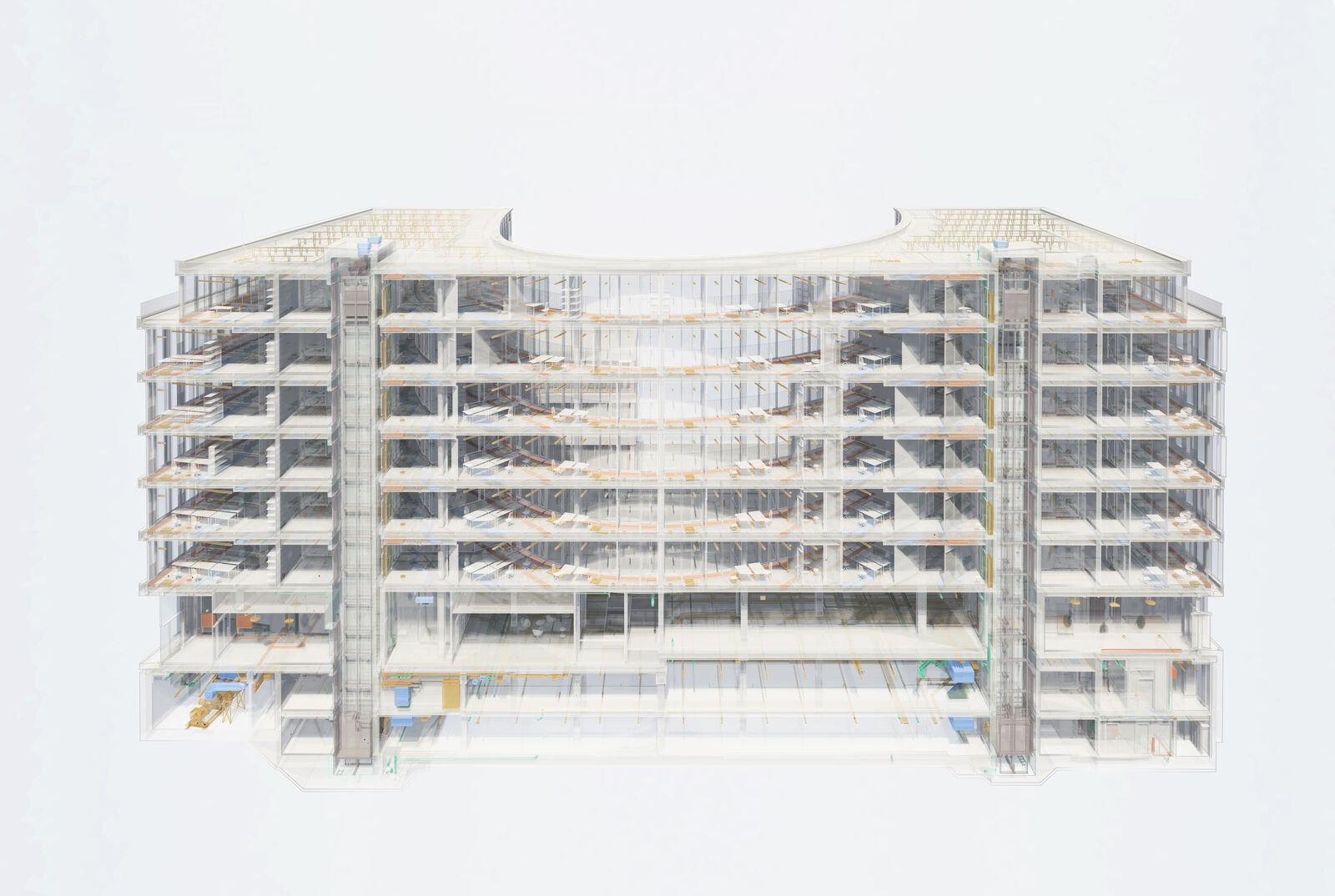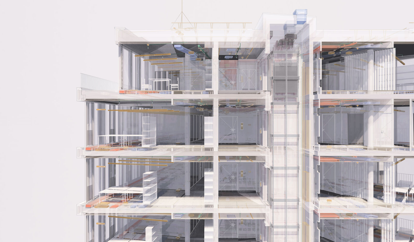 Das gesamte Projekt wurde als BIM-Planung (Level2) durchgeführt. Die modellbasierte Arbeitsmethode mit 3D-Visualisierung erhöht die Transparenz, optimiert das Schnittstellenmanagement und verbessert die Kommunikation zwischen den Beteiligten während aller Projektphasen. Wir haben über die gesamte Planungs- und Bauzeit die BIM-Gesamtkoordination übernommen - neben der Objektplanung waren die Fachdizipline der Tragwerksplanung sowie der TGA Teil des BIM-Prozesses.