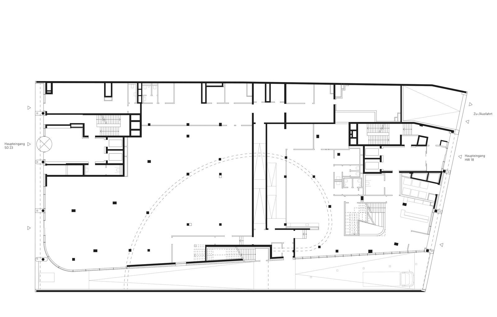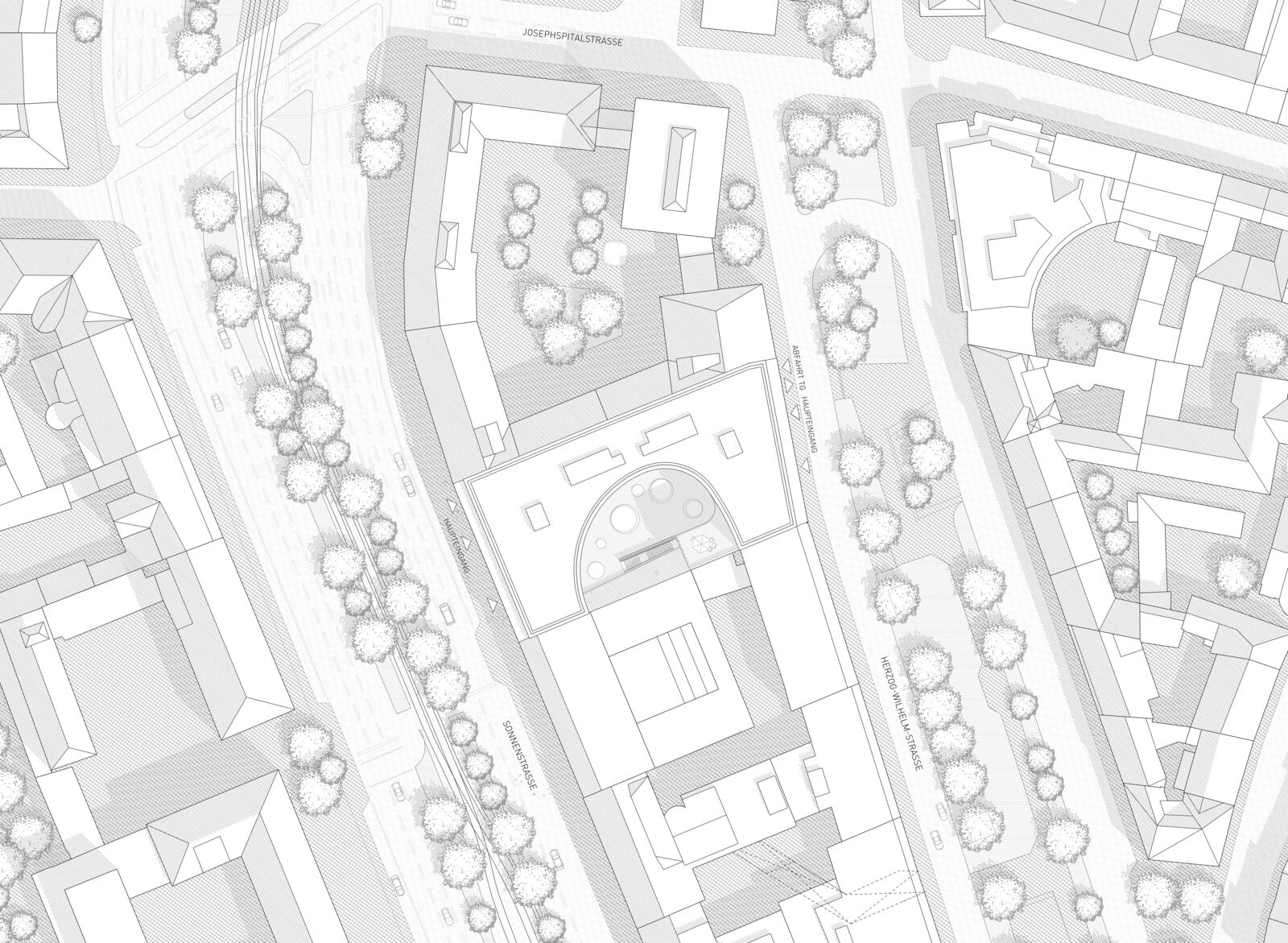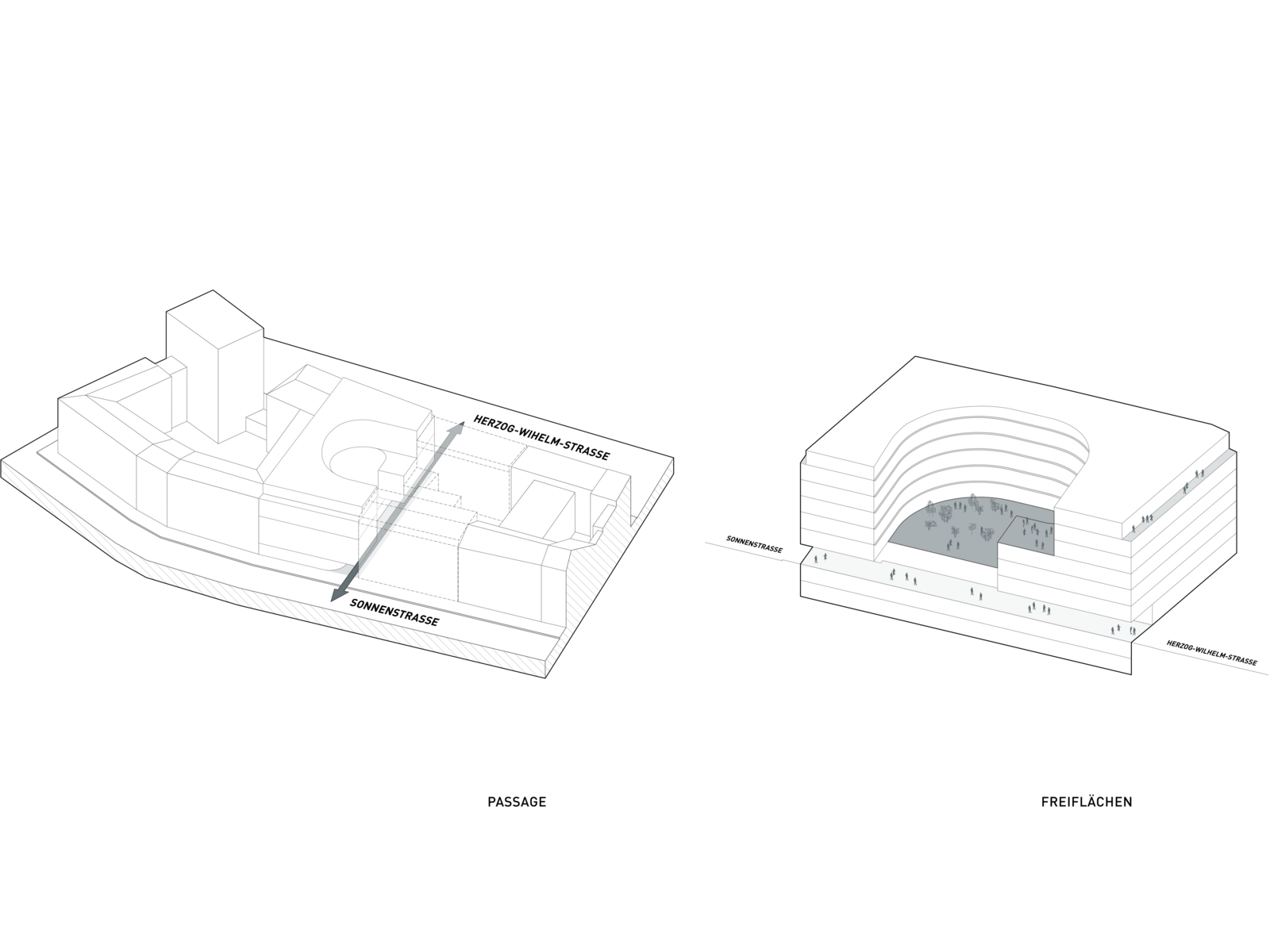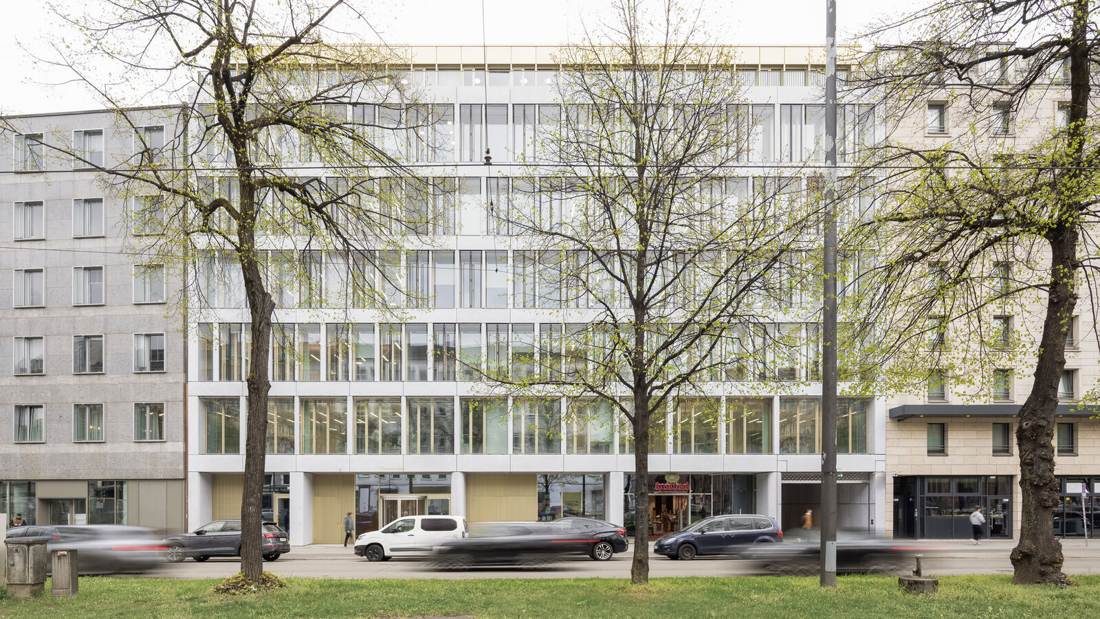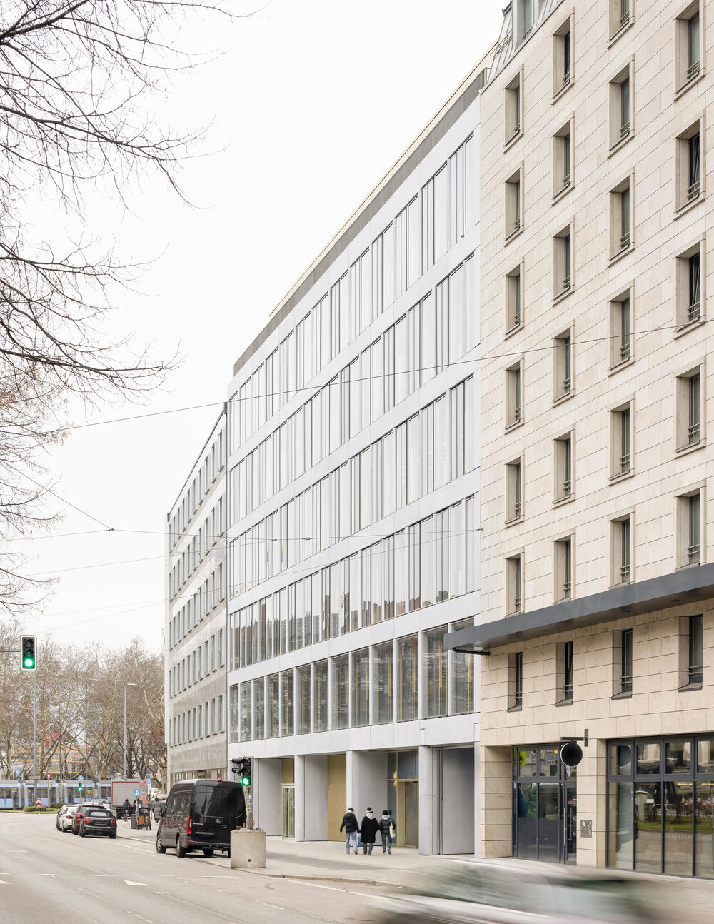 Offenheit, strukturelle Klarheit, eine differenzierte Einordnung in den städtischen Kontext sowie eine symbiotische Verflechtung der Büroeinheiten mit dem Freiraum, sind die prägenden Elemente des architektonischen Konzeptes. Das circa 2400 Quadratmeter große Bebauungsgrundstück liegt direkt in der Münchner Innenstadt, in einer von typischer Architektur der Nachkriegsmoderne geprägten, historisch gewachsenen Stadtstruktur.