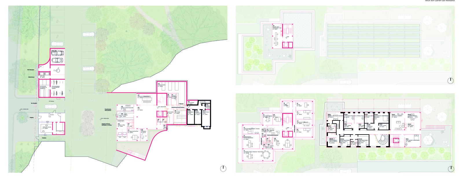 Reaktion der Gebäudevolumen auf Bestandsbäume, Erweiterung Residenz, Erschließung