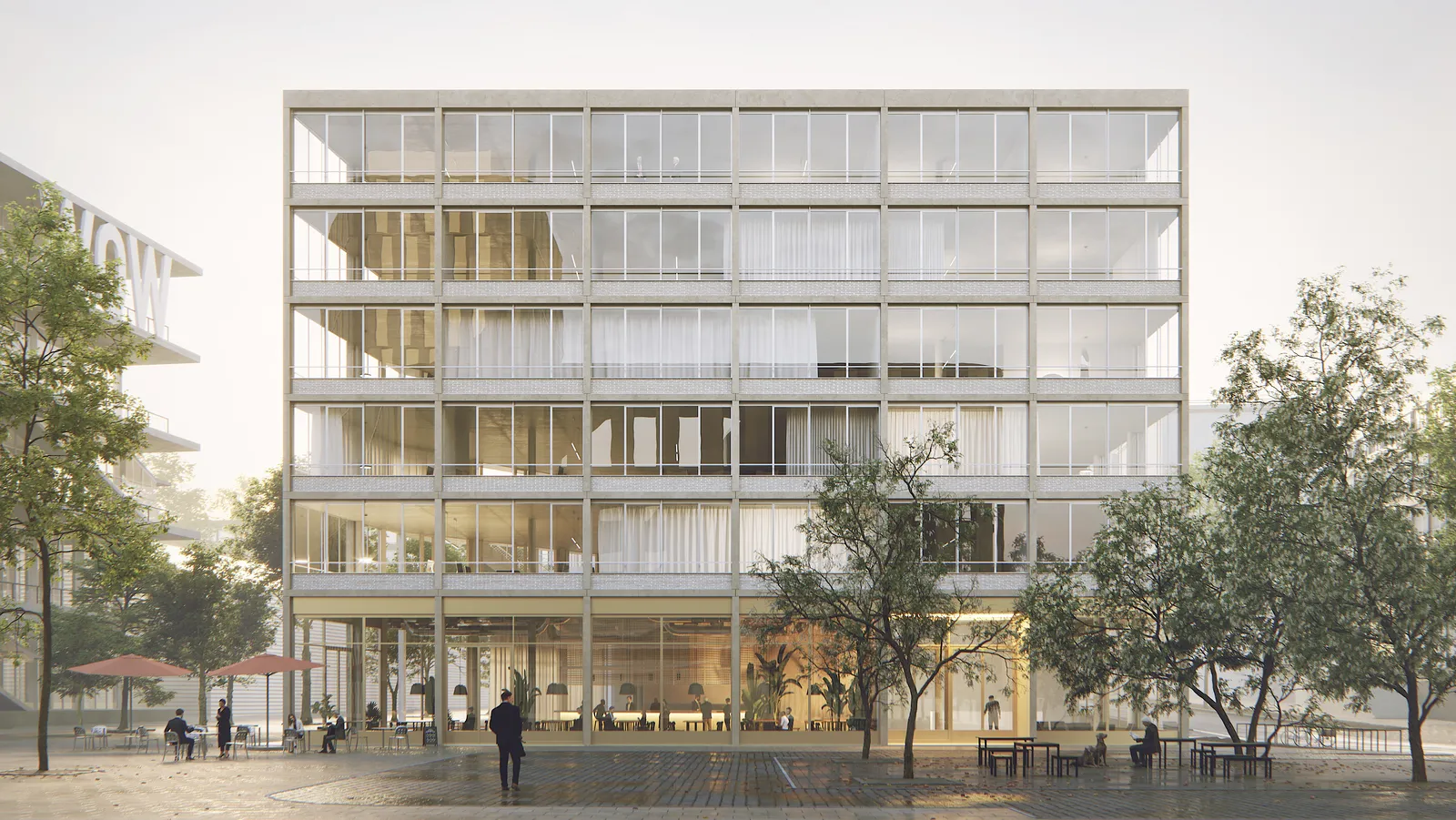 Die Offenheit in der Gestaltung durch zahlreiche Freiräume lassen den Gebäudekomplex zu einem einzigartigen, ikonografischen Büro- und Geschäftshaus werden, das sich optimal in das heterogene Umfeld des Werksviertels einfügt.