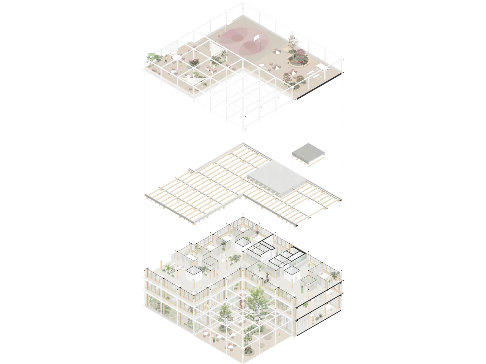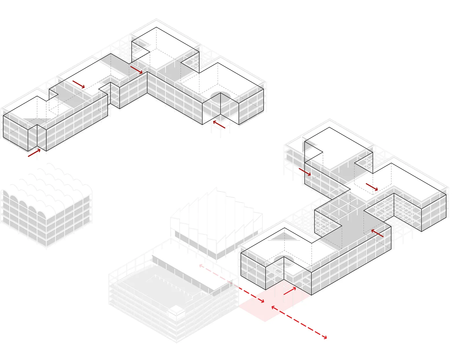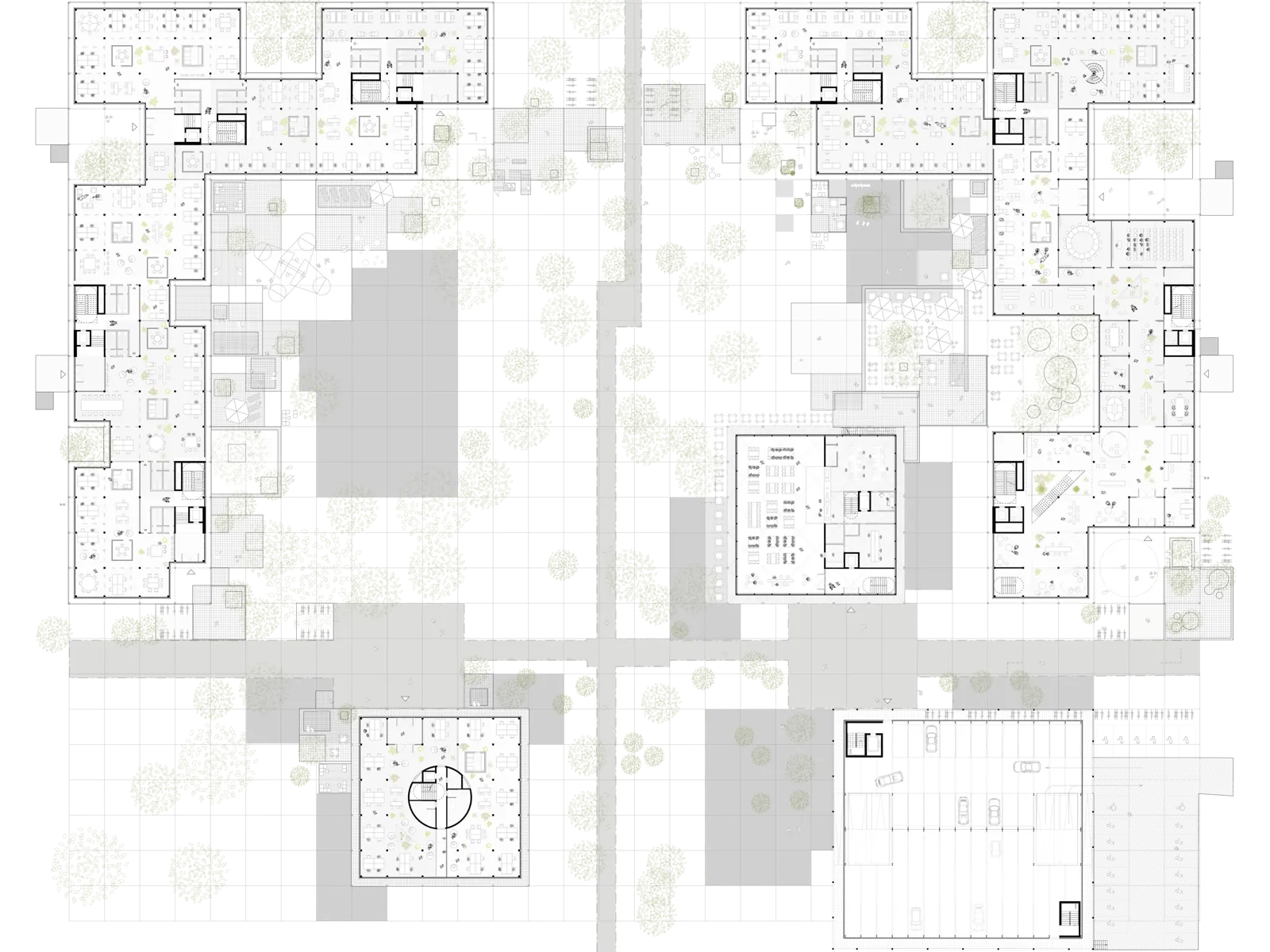 Strukturelle Klarheit, eine differenzierte Einordnung in den städtebaulichen Kontext, sowie die symbiotische Verflechtung aller Arbeitsmodule mit dem umgebenden Freiraum, sind die prägenden Elemente des architektonischen Konzeptes.