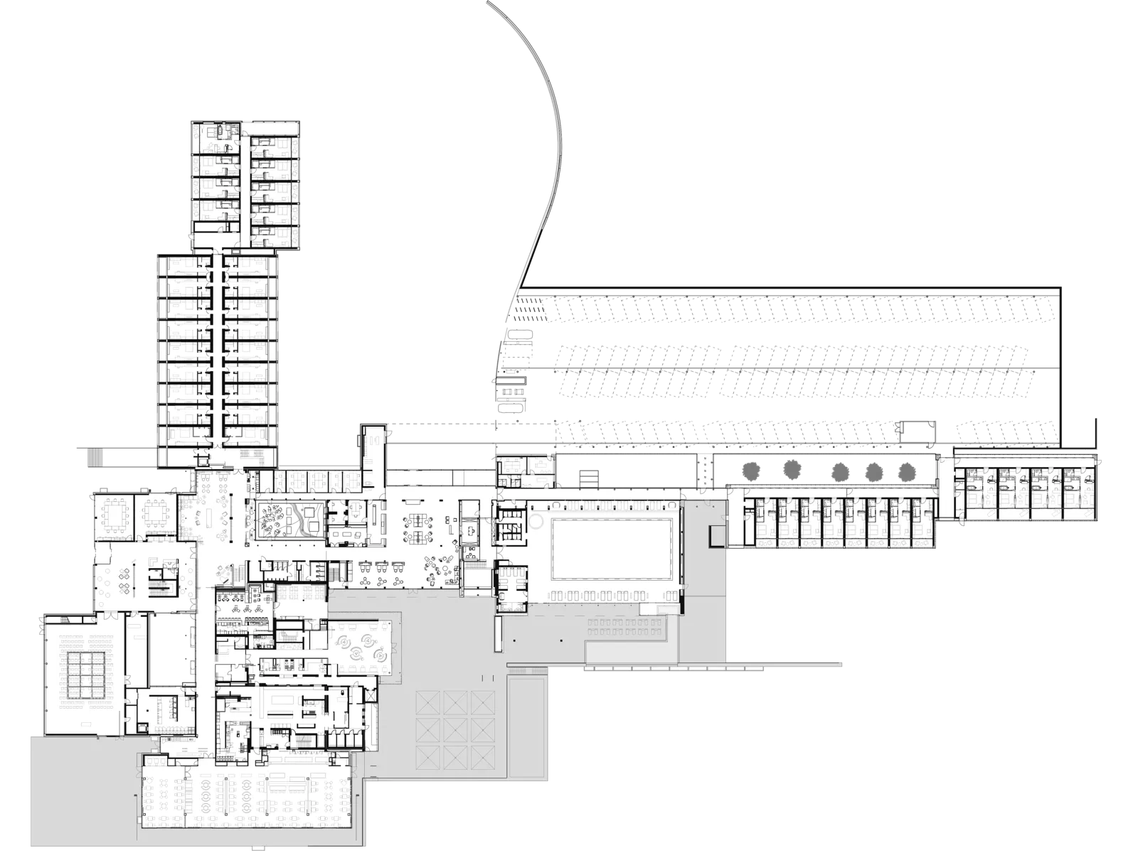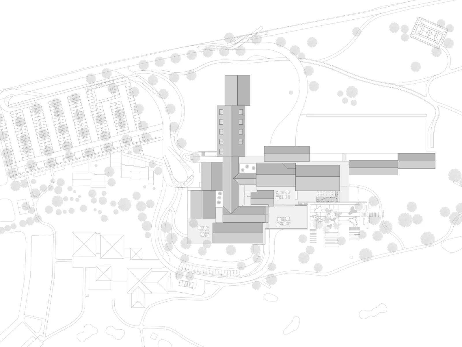 Im Laufe der Jahrzehnte war durch die stetige Erweiterung des Resorts eine unübersichtliche Gebäudeorganisation entstanden, die lange Erschließungswege und personalintensive Abläufe erforderte. Das Weiterwachsen des Ensembles bedingte eine neue Struktur, die sich dem Nutzer unmittelbar erschließt. Dem Entwurf ist deshalb ein klares, ablesbares Organisationsprinzip zugrunde gelegt.