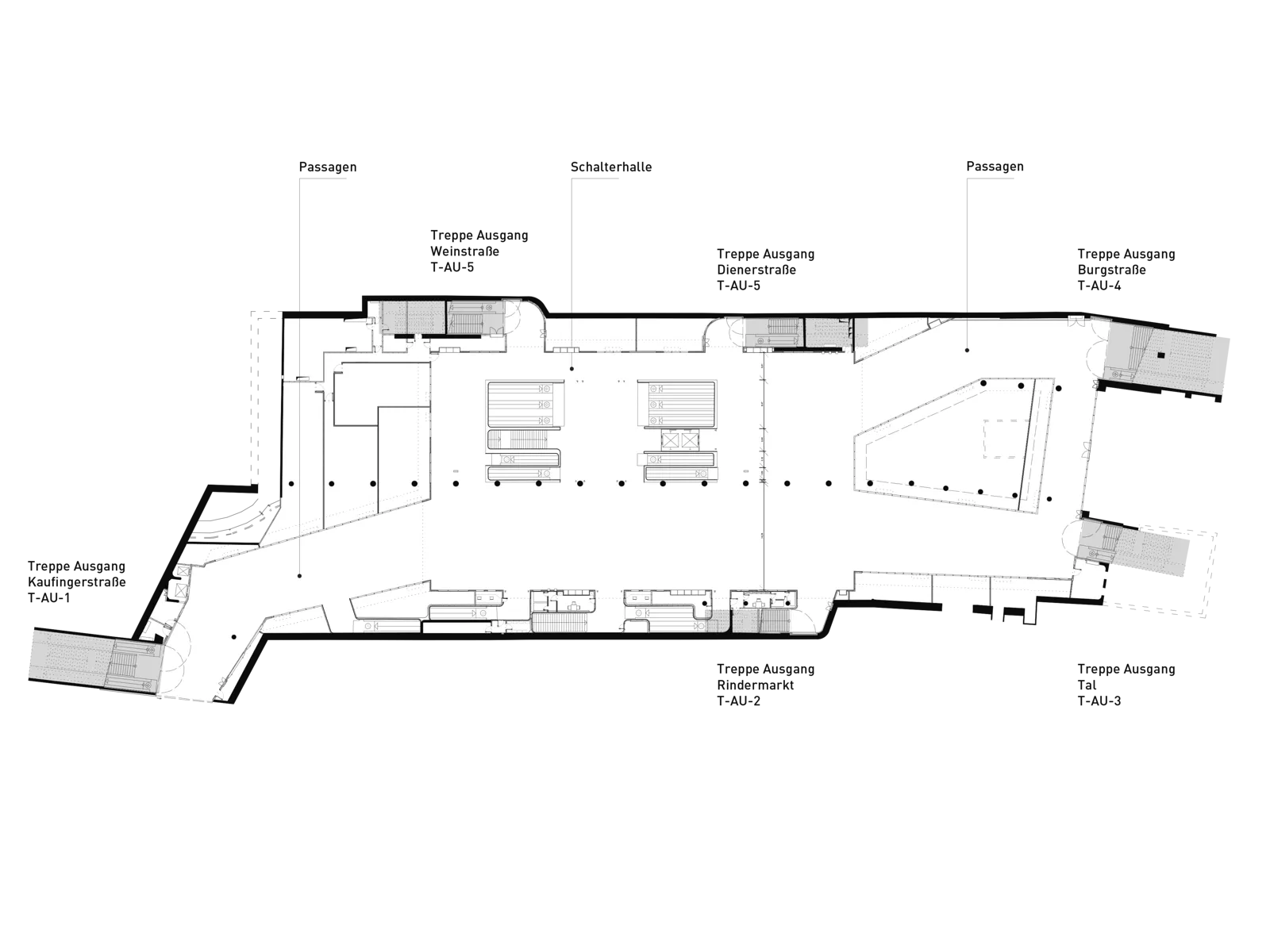 Das architektonische Konzept optimiert Zugang und Transfer zu den Bahnsteigen. Es schafft einen Stadtraum mit eigener Identität an der neuralgischen Schnittstelle von wichtigen Verkehrssystemen und dem stark frequentierten Mittelpunkt Münchens.