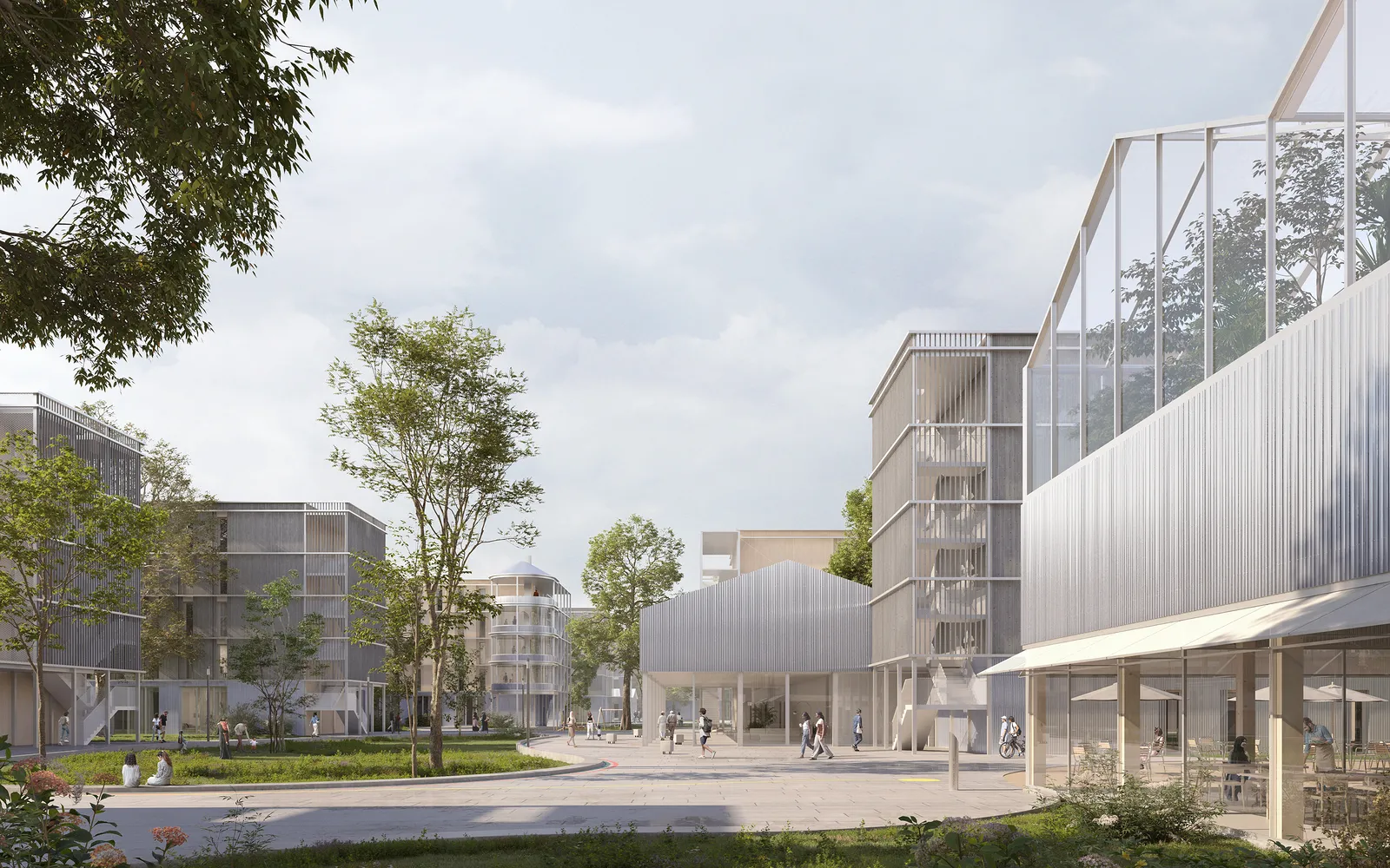Each accommodation building consists of three interlinked building blocks that frame a semi-opened courtyard. The permeable structure of the building promotes ventilation in the area and the courtyards, which dock with the central open space, serve as an additional retreat and recreation area for the residential communities and offer additional, building-specific uses. Efficient floor plans and five-storey building sections ensure minimal sealing of the areas.