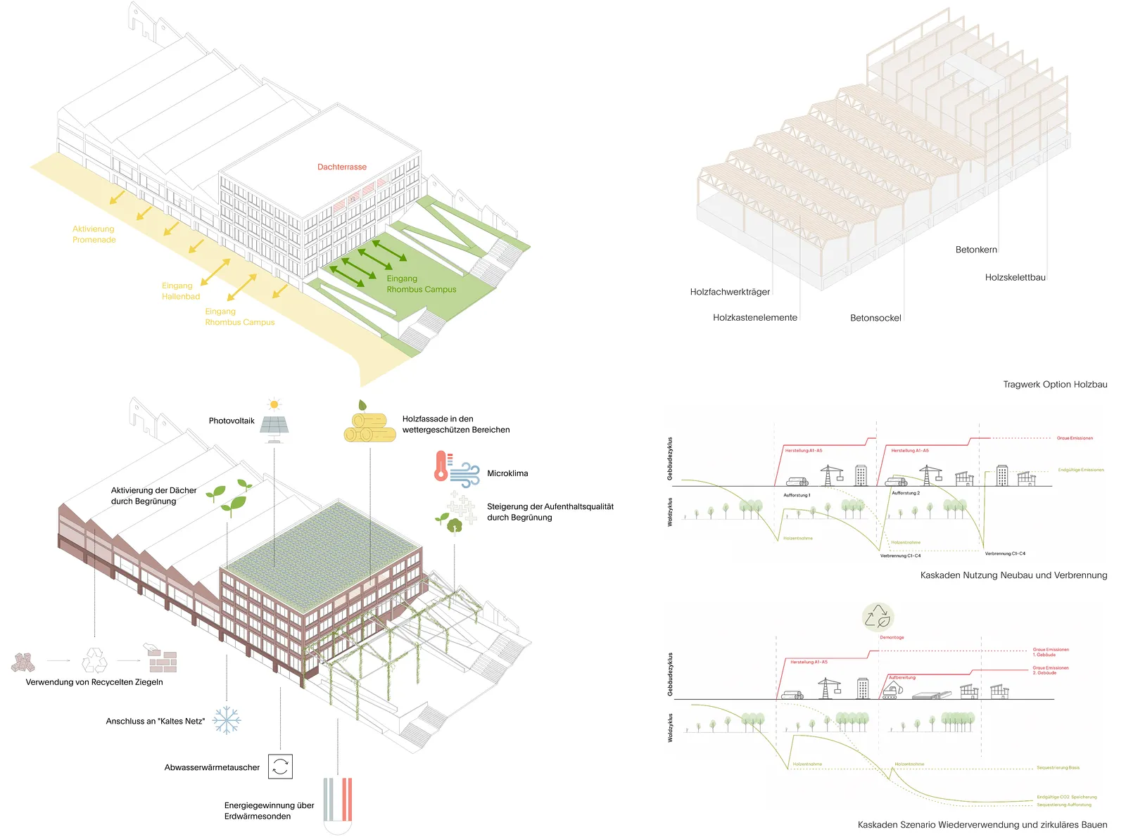 The proposed solution for the Rhombus innovation district develops a holistic and coherent overall urban development concept for the area to be transformed. The reactivation of the brownfield site holds enormous potential for an attractive and future-oriented urban district, not least because of its central location and the special charm of its industrial past.