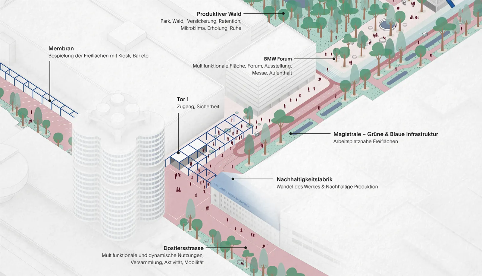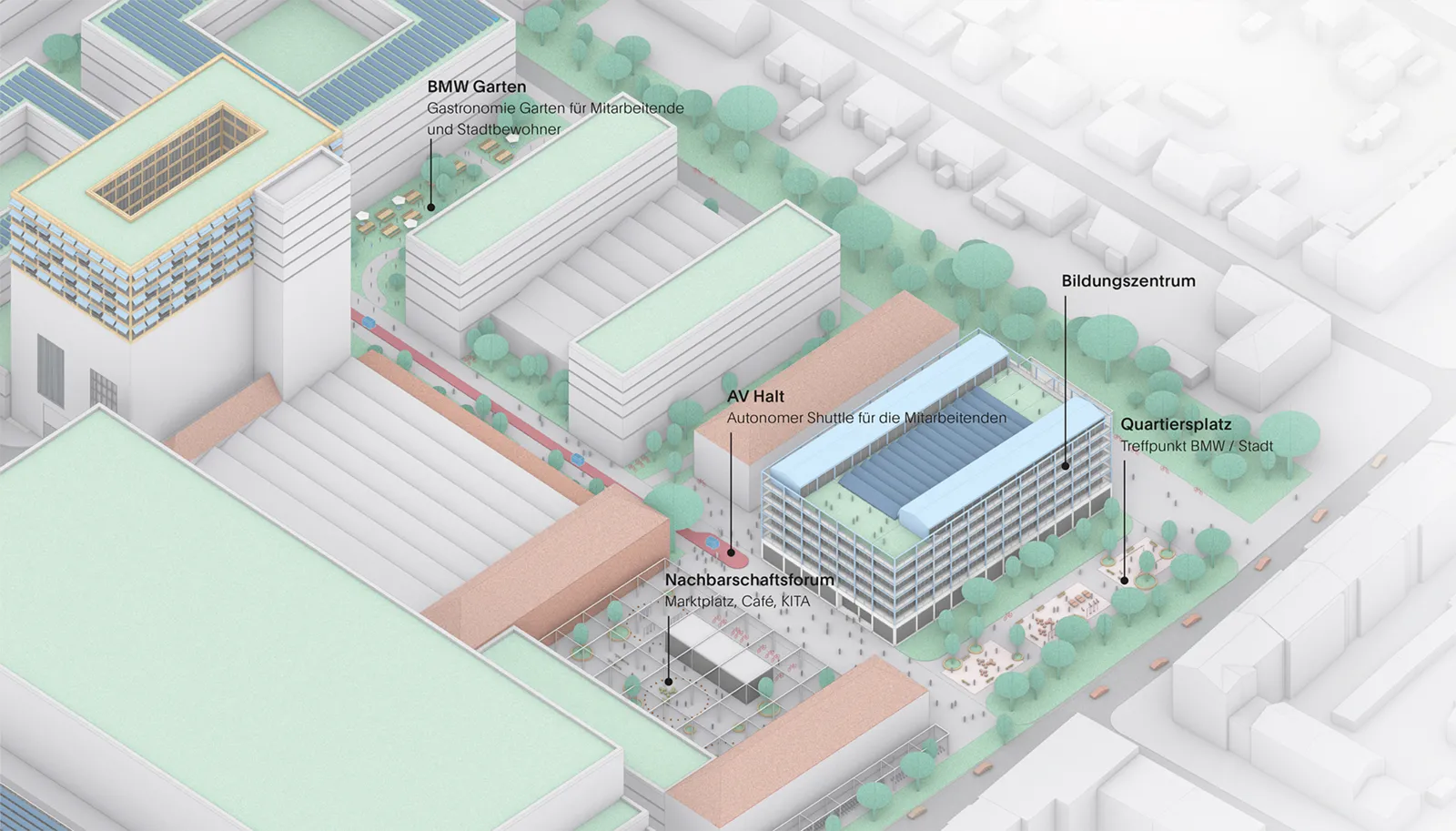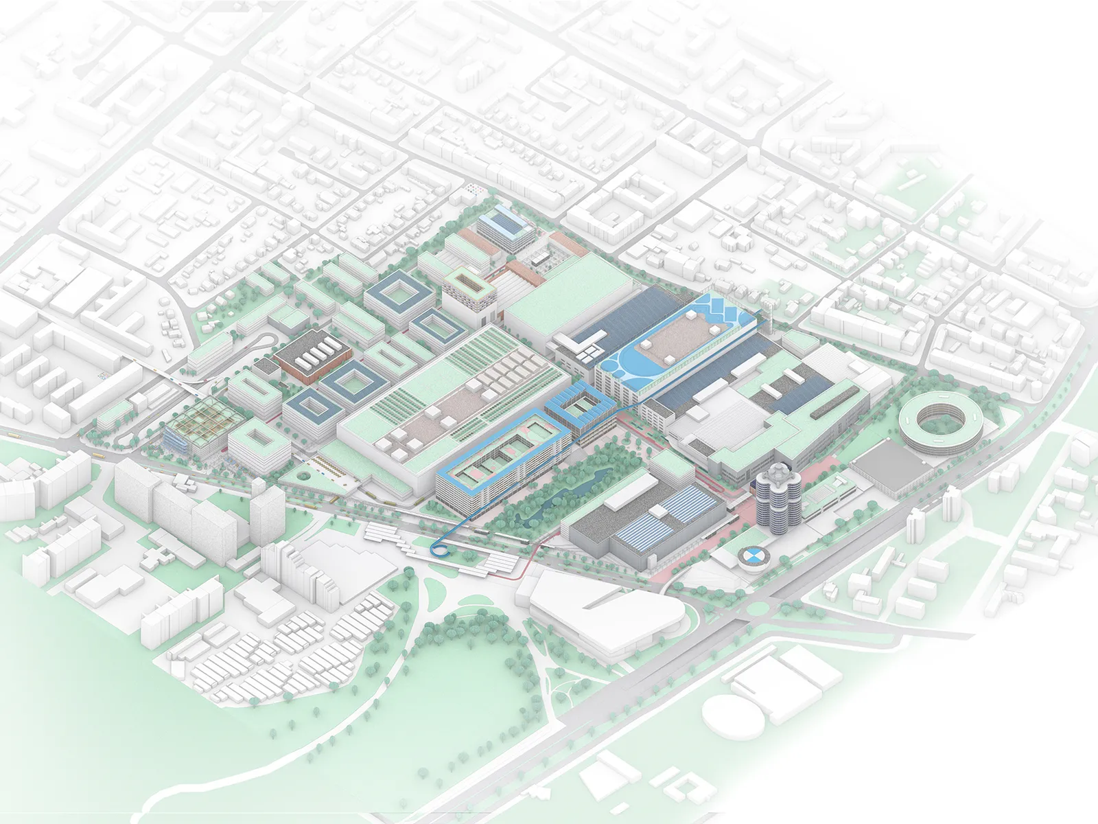 The objective for this flagship factory is to become a sustainable urban production site that meets all of the above requirements but doesn’t stop there. As well as actually manufacturing and distributing its products worldwide, BMW has expressly seized this opportunity and the responsibility to serve as caretaker and creator for itself as an enterprise, its natural environment and its hometown. In doing so, it becomes a role model for corporations across the globe.
