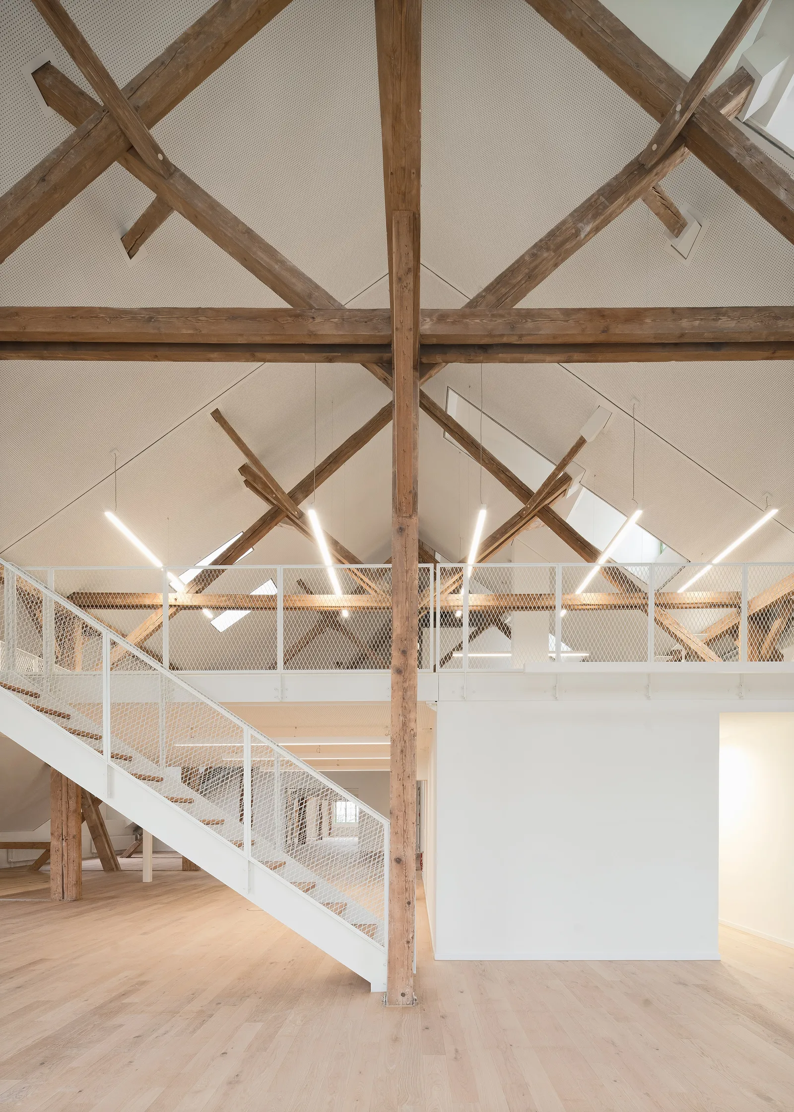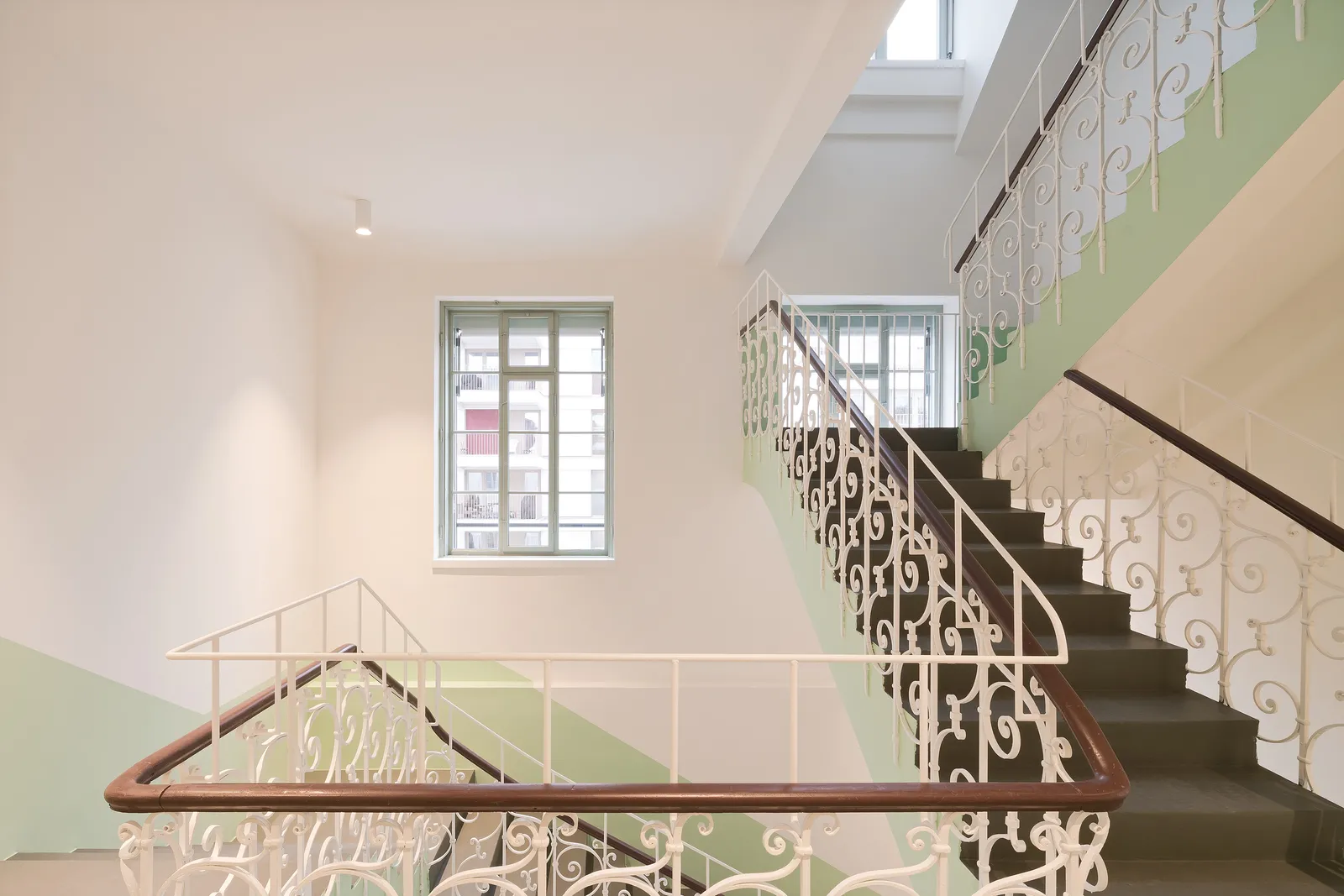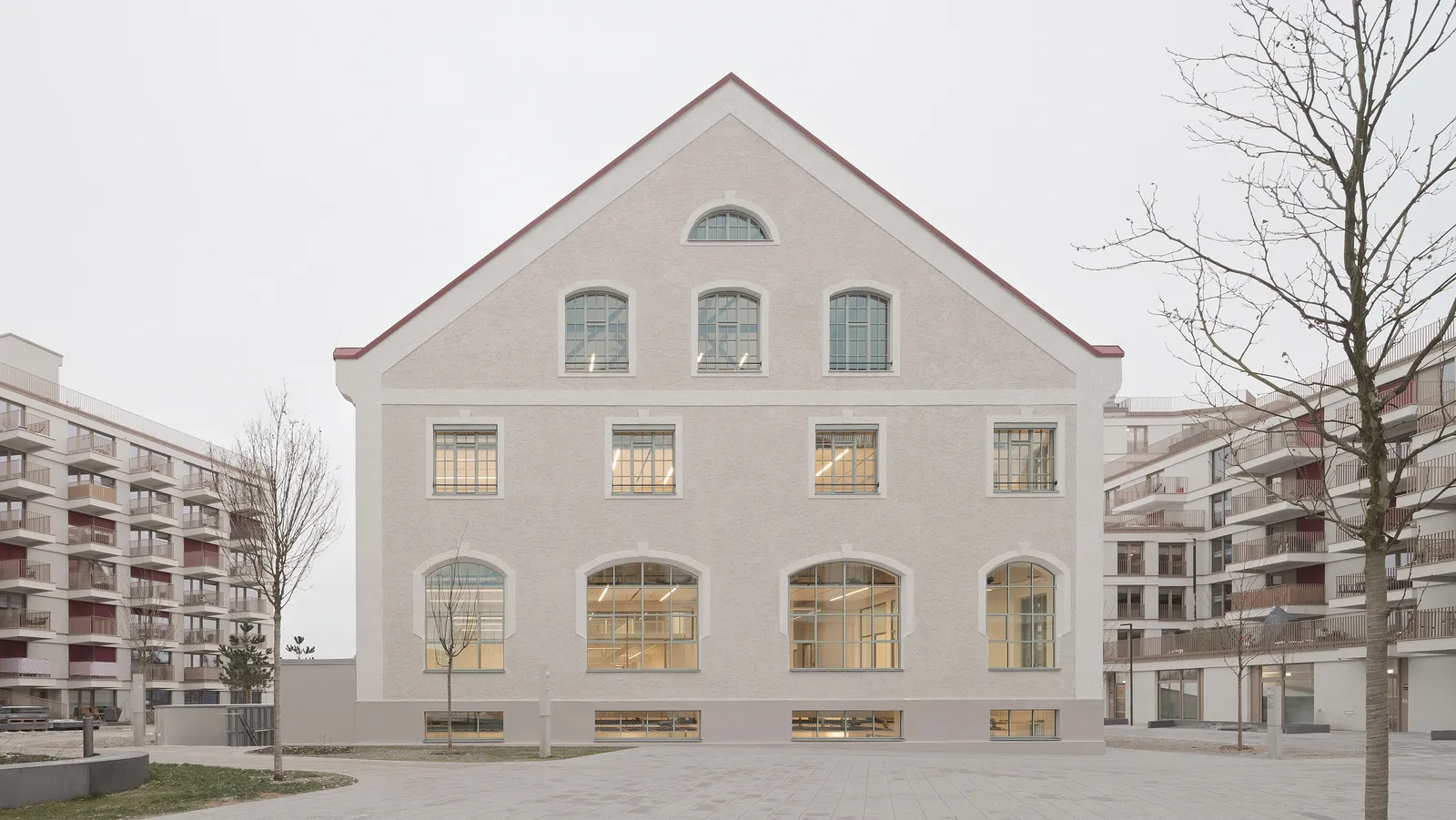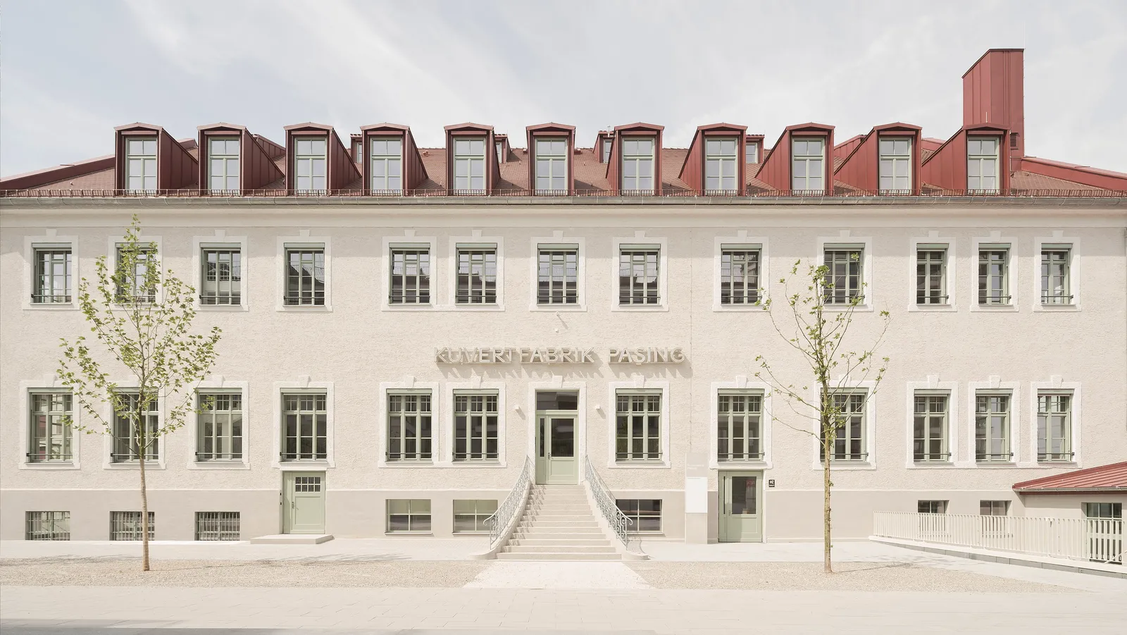 The former envelope factory is the centerpiece of the new development at the end of the main boulevard leading from the center of Pasing. A defining feature of the neighborhood since it was built in 1909, the factory has been renovated in line with historic preservation guidelines. We retrofitted the interior to create modern offices that meet today’s workplace standards and blend seamlessly into the historic fabric of the original structure.