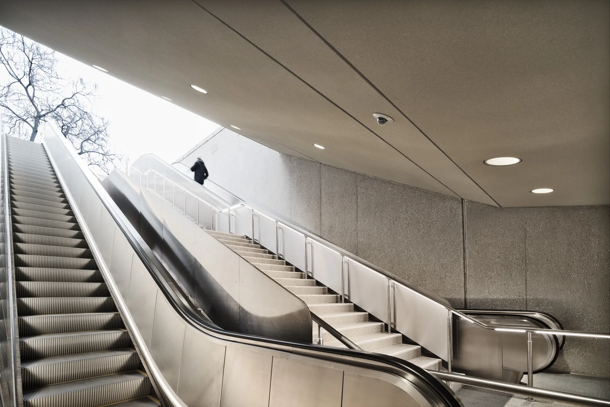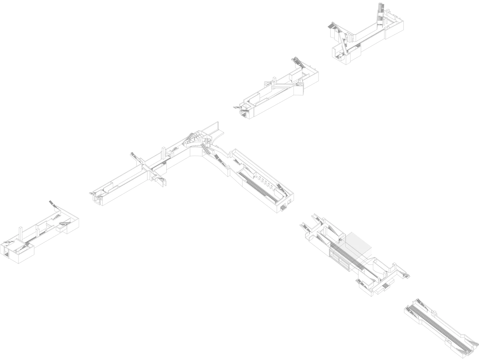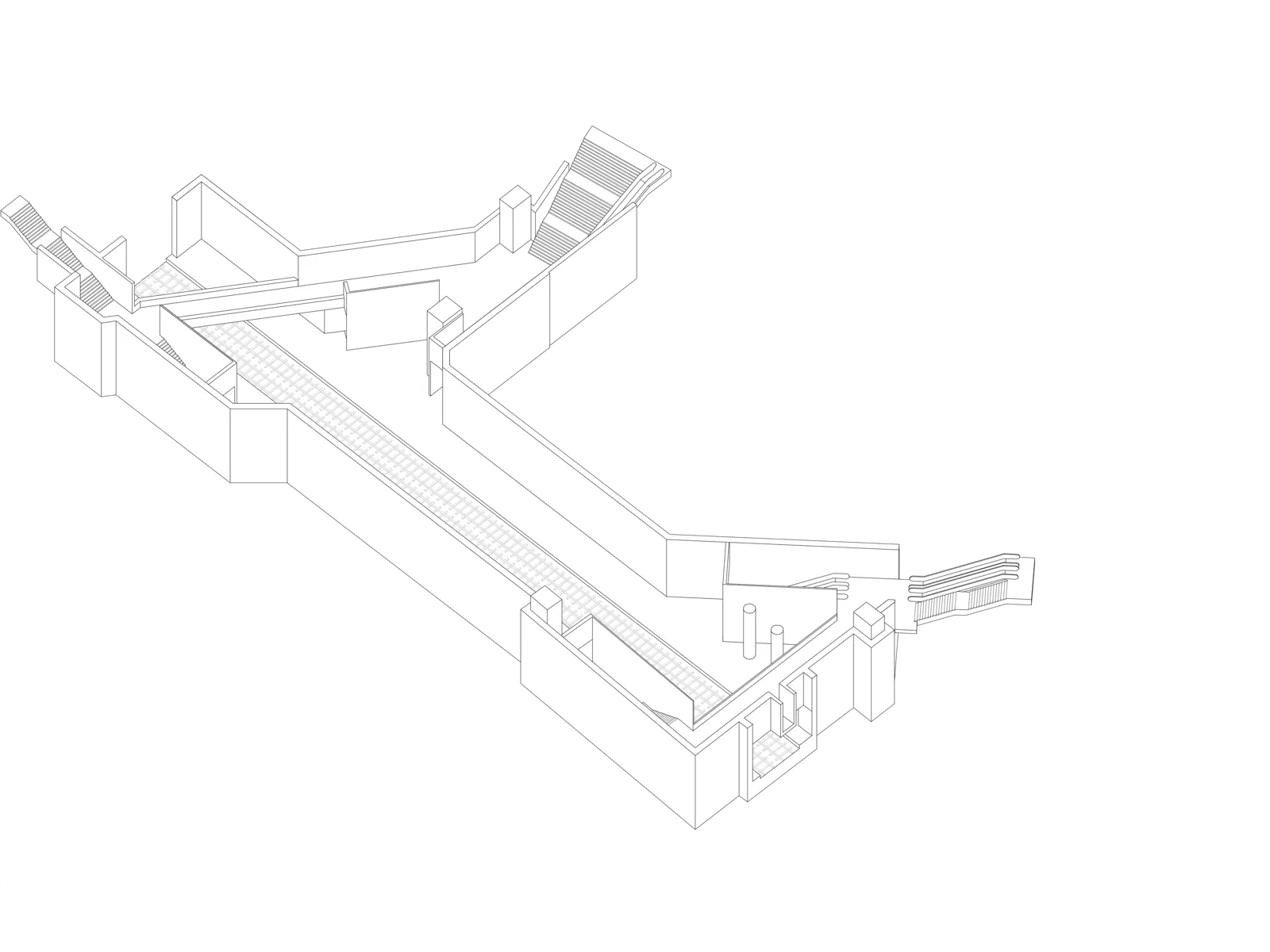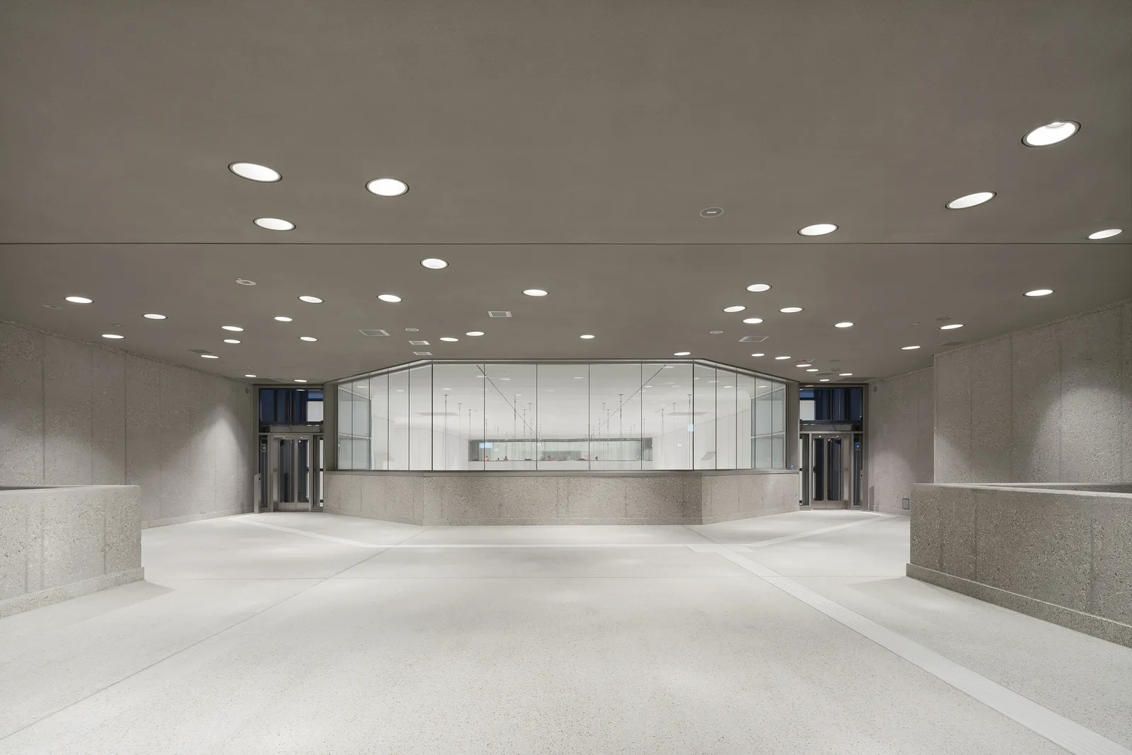 This gives each station a distinct character and high recognition value, which allude to the exterior location. By practicing restraint in the formal design of the spaces, the design underscores the symbolic character of each station structure. The concept defines two categories of space, each governed by its own design principles. In the transfer zone with stairways and mezzanine floors, the design leaves the underlying structure exposed and without cladding.