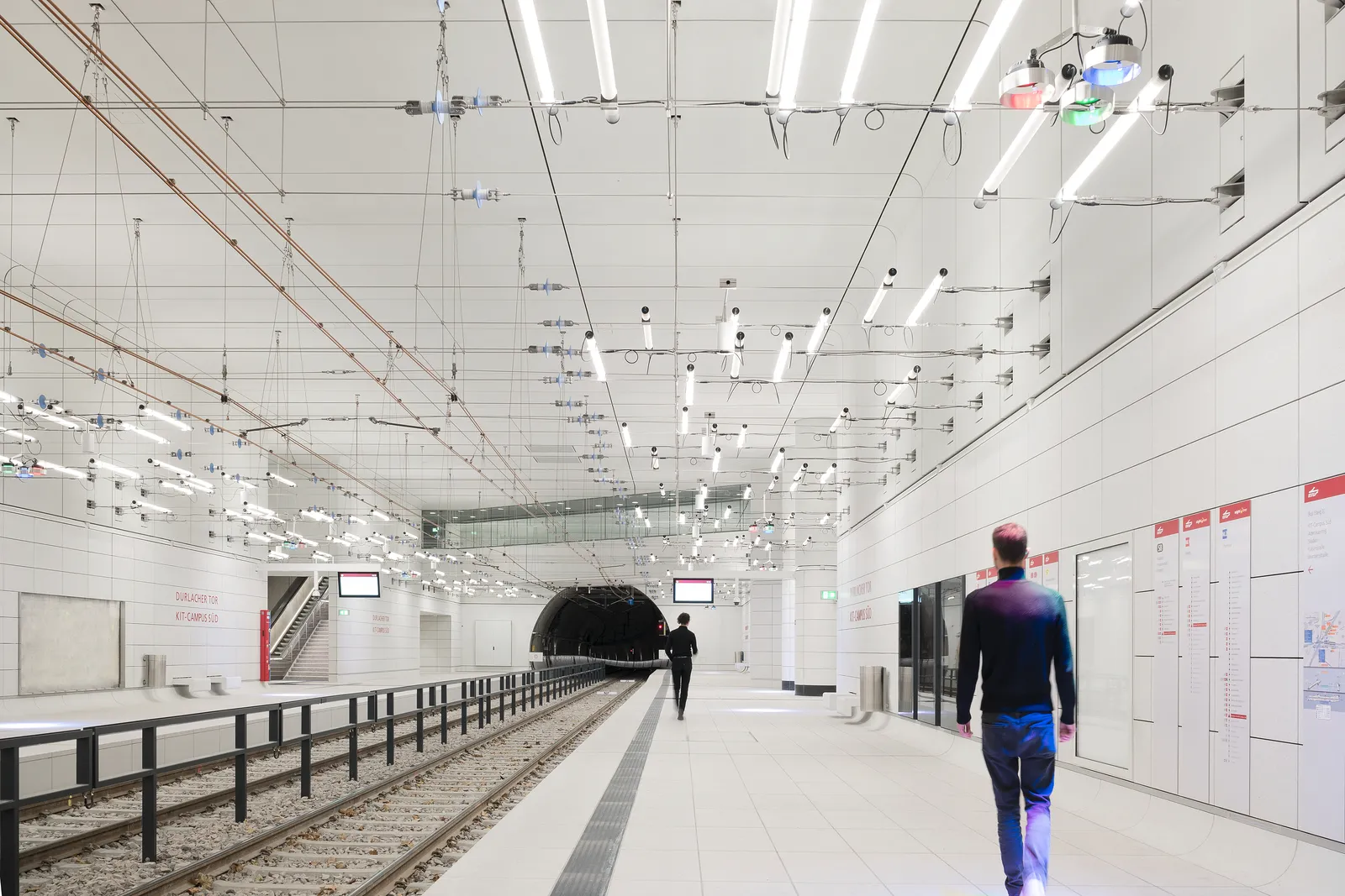 Like a common thread winding its way below ground, our new uniform design ties together the seven light rail stations in downtown Karlsruhe relocated underground. The design is understated, giving a certain potency and poetry to the spaces and providing a contrast to the visual and auditory overload of the busy pedestrian area overhead.