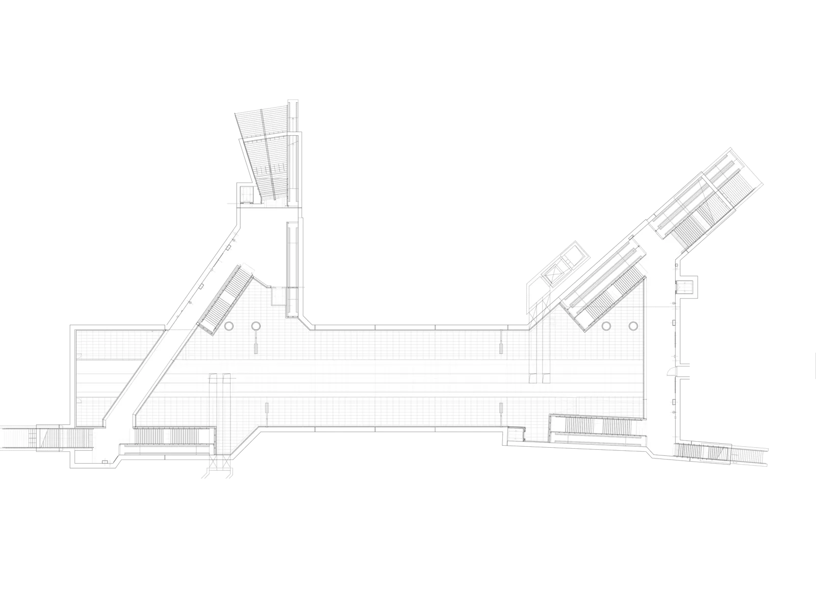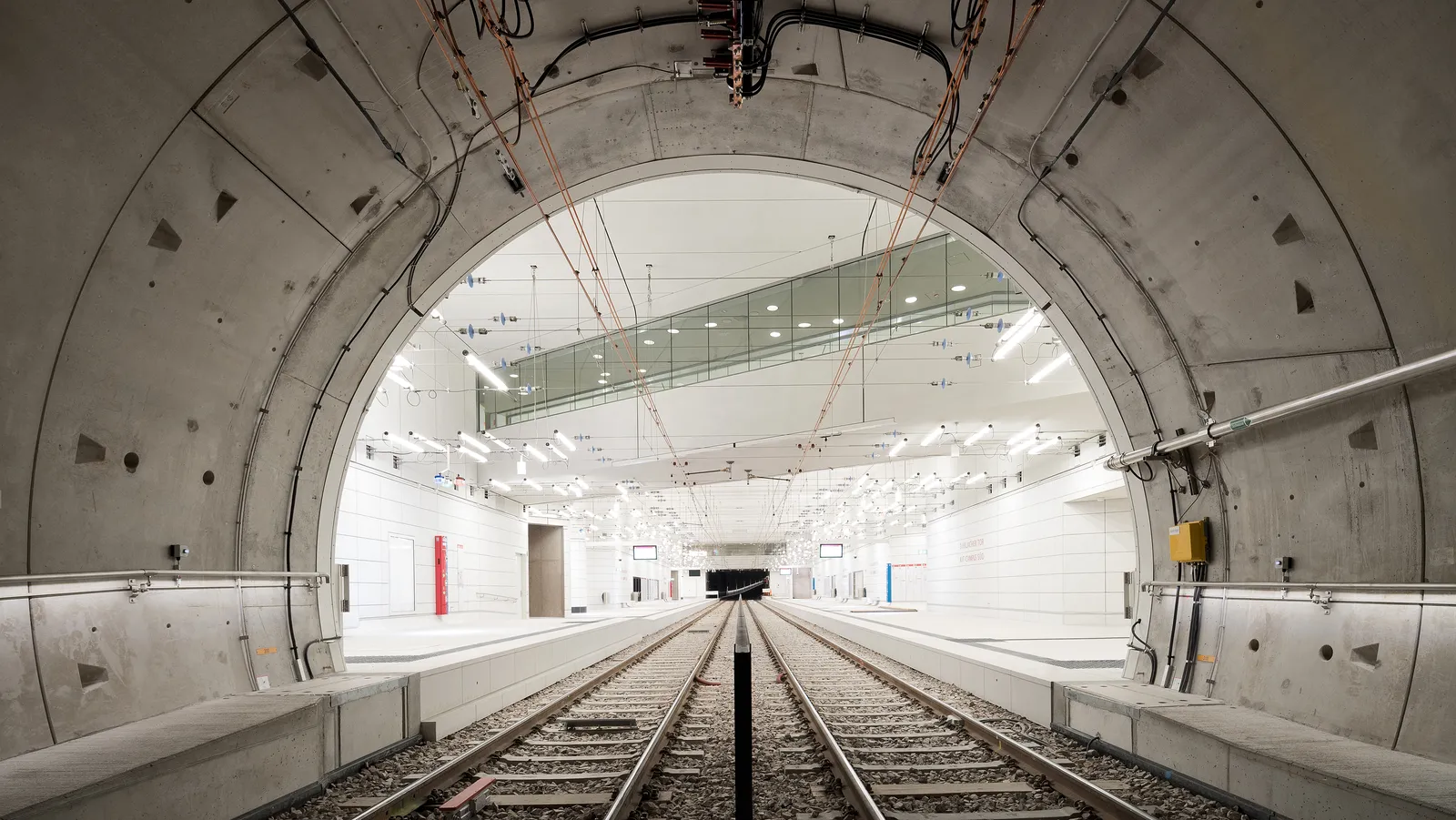 The use of the same material on the ceilings, walls and floors reduces visual noise and places the focus on the essential elements: trains, signs and symbols.